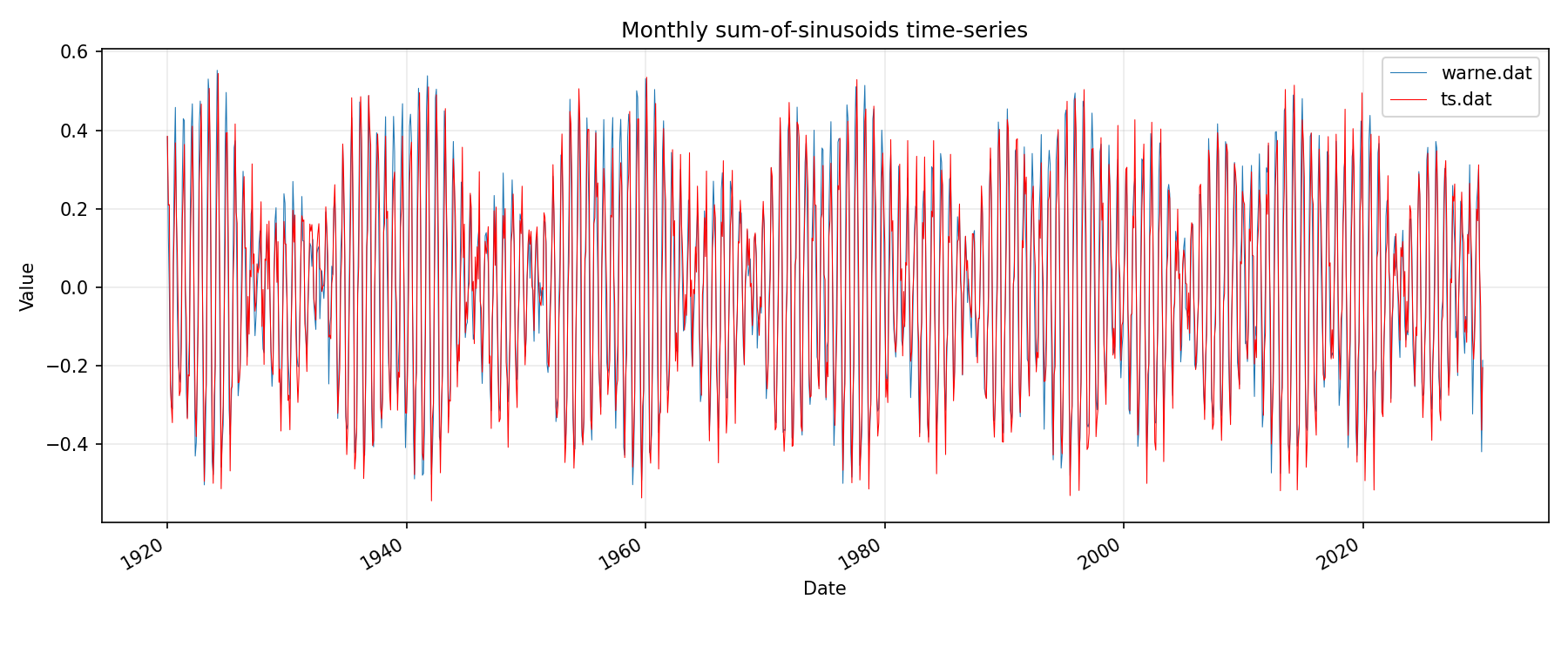 tidal forcing comparison to reference monthly / bar chart