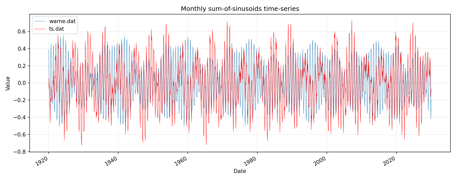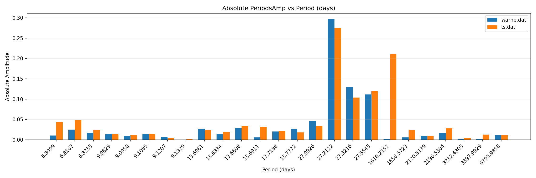 tidal forcing comparison to reference monthly / bar chart