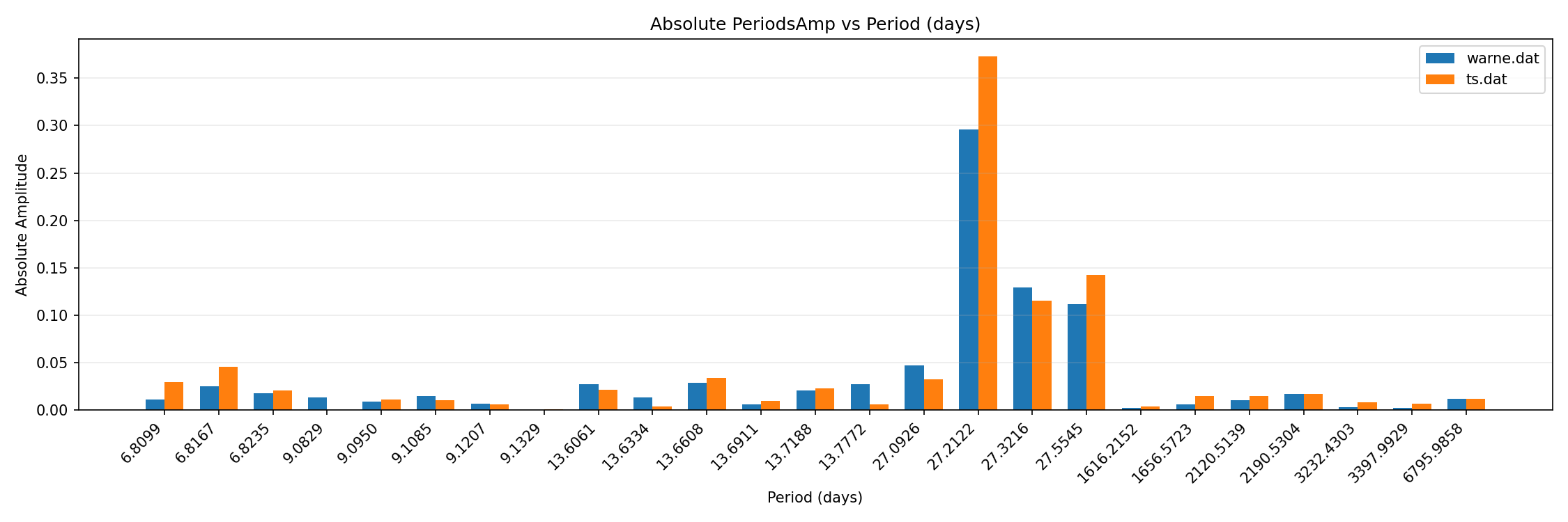 tidal forcing comparison to reference monthly / bar chart