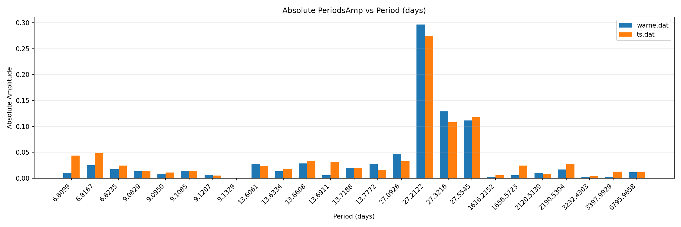 tidal forcing comparison to reference monthly / bar chart