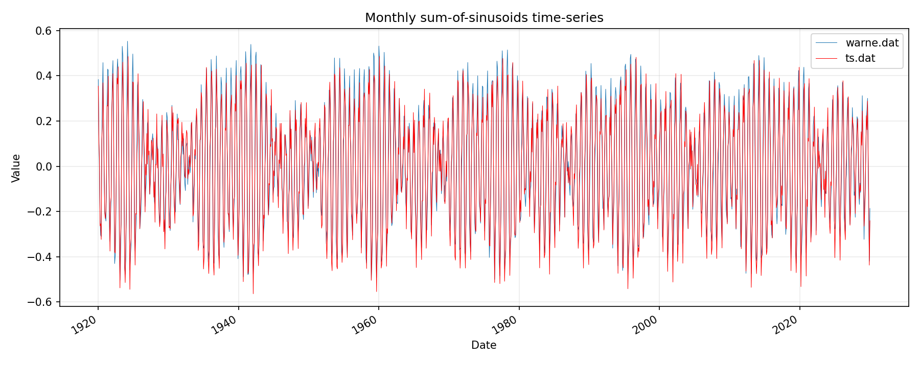 tidal forcing comparison to reference monthly / bar chart