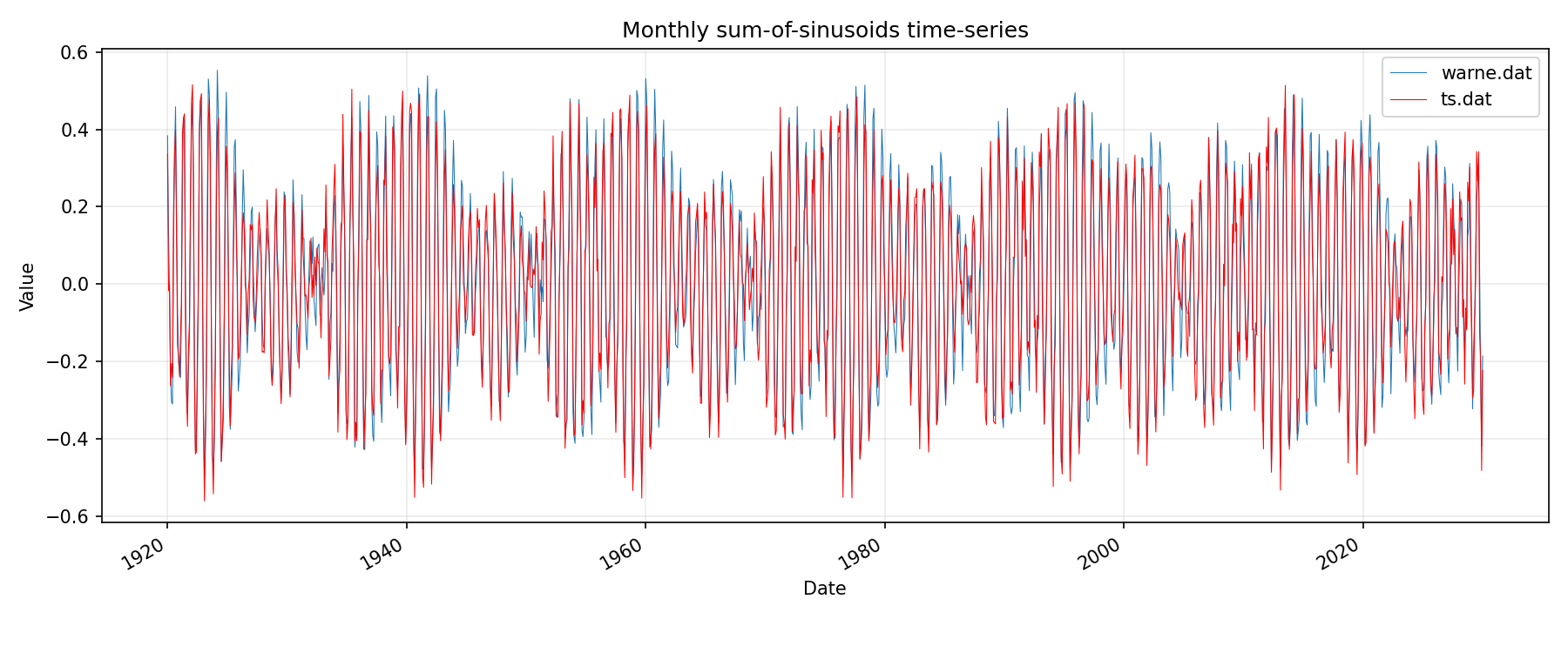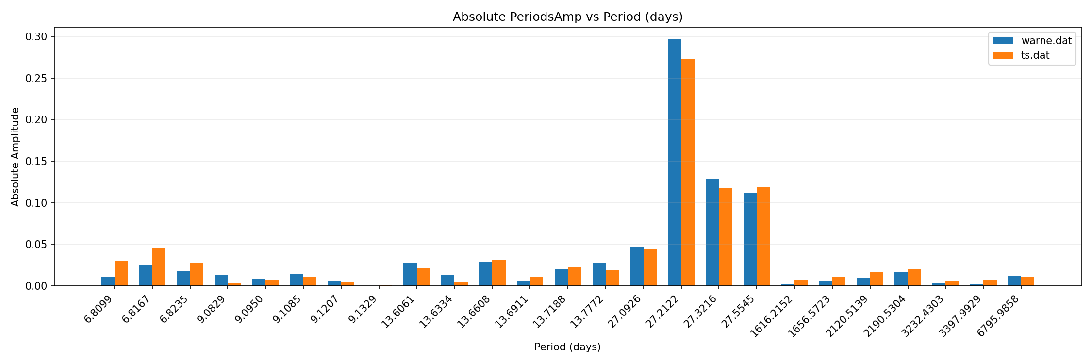 tidal forcing comparison to reference monthly / bar chart