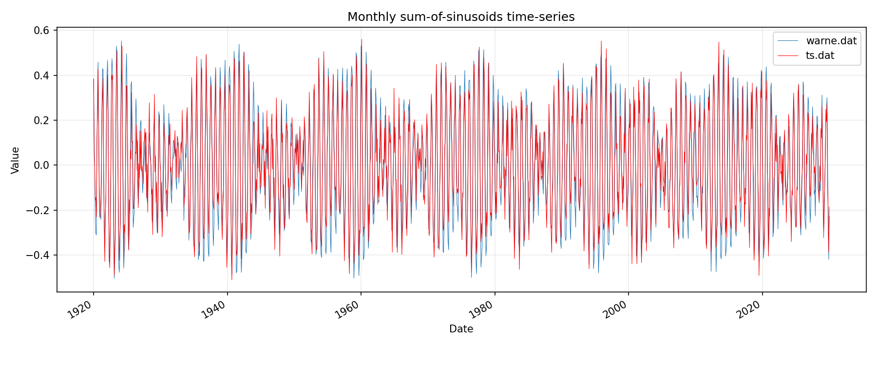 tidal forcing comparison to reference monthly / bar chart