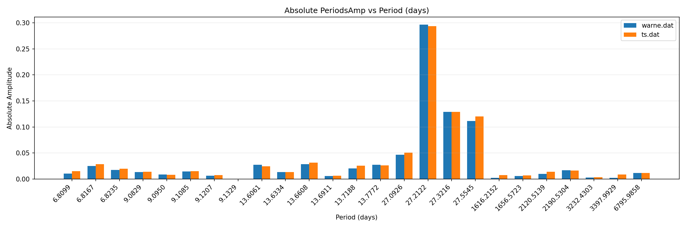 tidal forcing comparison to reference monthly / bar chart